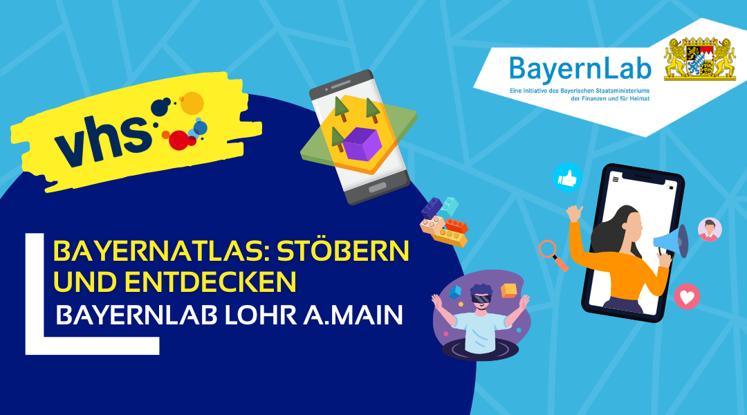 Wir erkunden gemeinsam die Möglichkeiten des BayernAtlas: Historische Karten, Umweltthemen, Denkmäler, Freizeit, EnergieAtlas uvm. ... Sie haben dabei die Gelegenheit, direkt die vorgestellten Themengebiete am Rechner unter der Anleitung des BayernLab-Teams auszuprobieren.